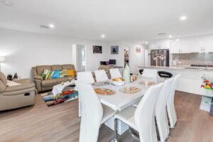 Living Spaces: The open-plan living and dining area is the heart of the home, designed for relaxation and entertaining. Additionally, there is a separate lounge room that can be used as a media room or an additional living space.
